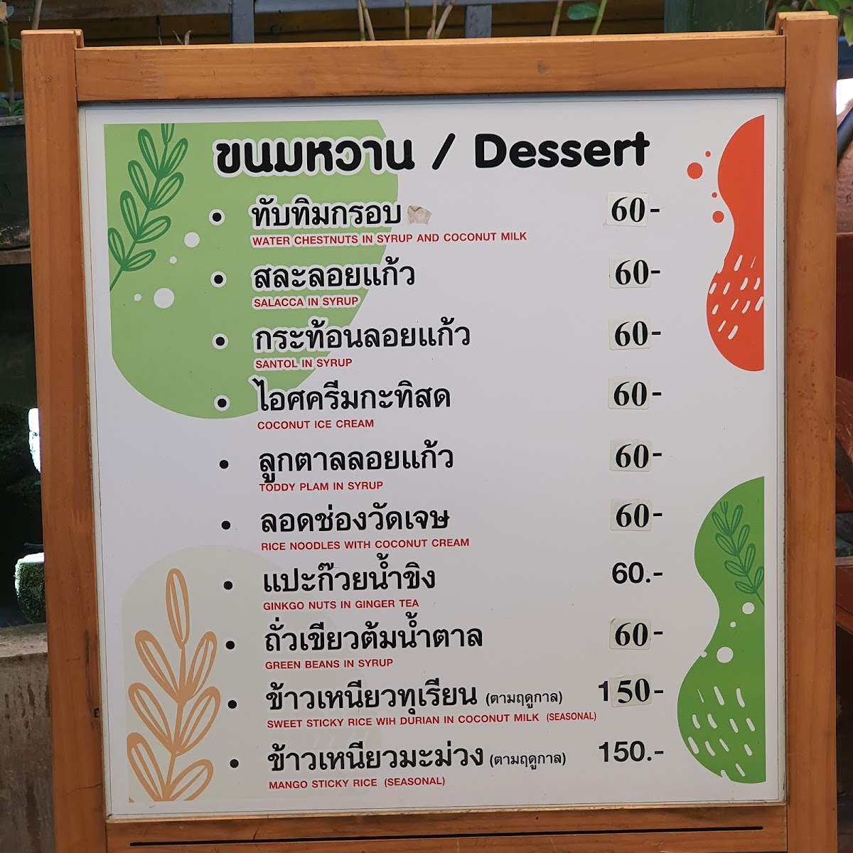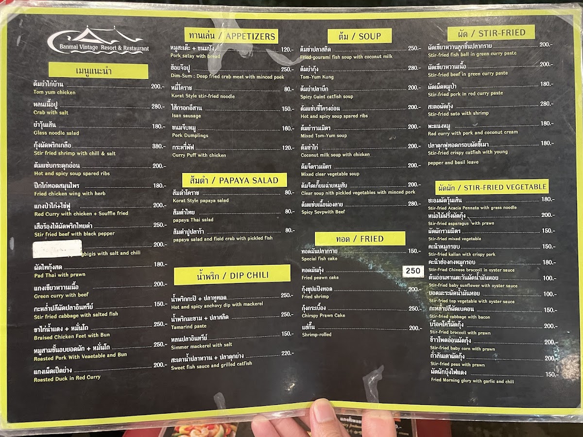 Banmai Chaynam Menu